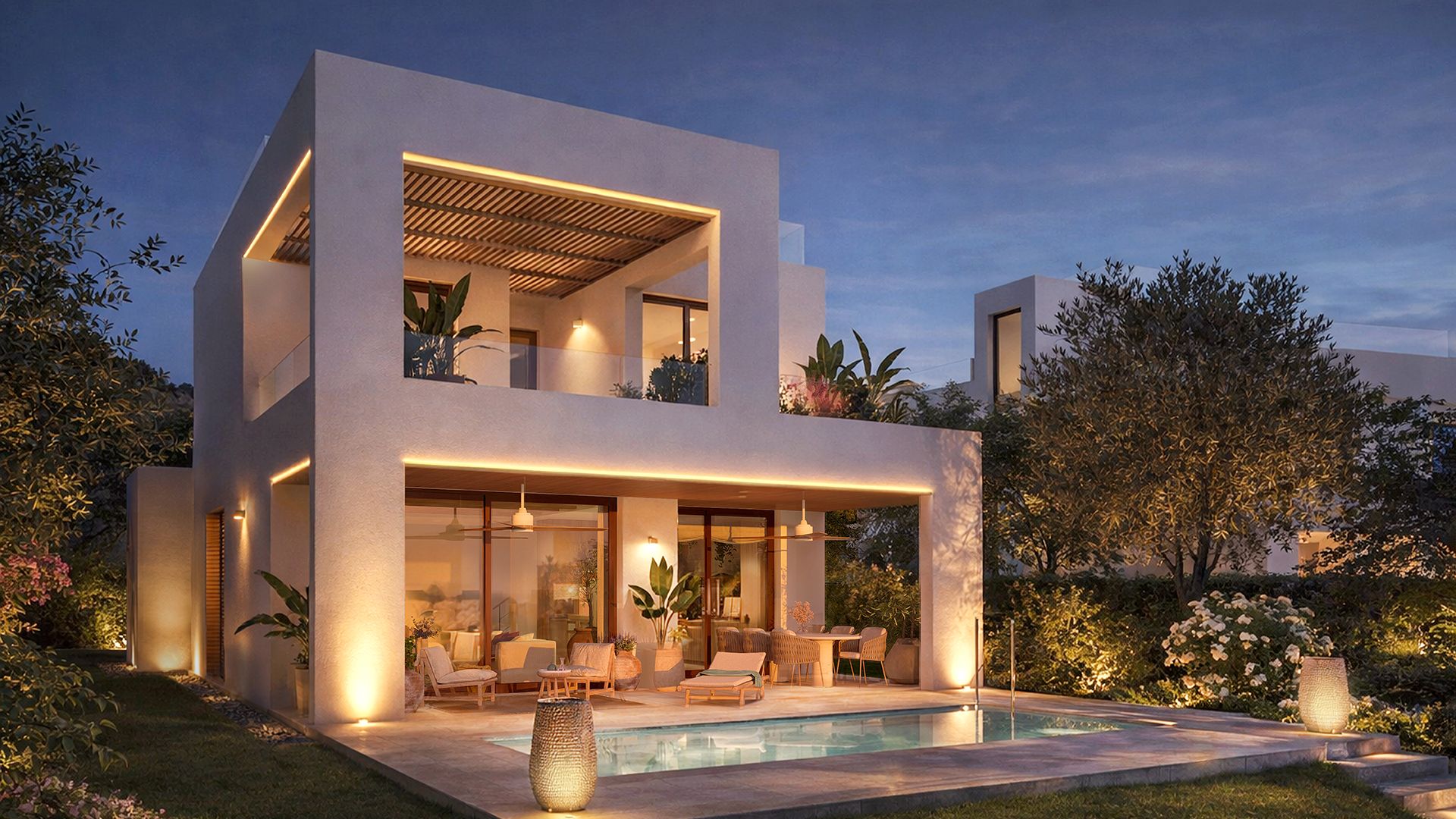 El conjunt està format per 16 habitatges unifamiliars amb acabats de màxima qualitat, concebuts amb una arquitectura que respecta l’estil mediterrani tradicional.