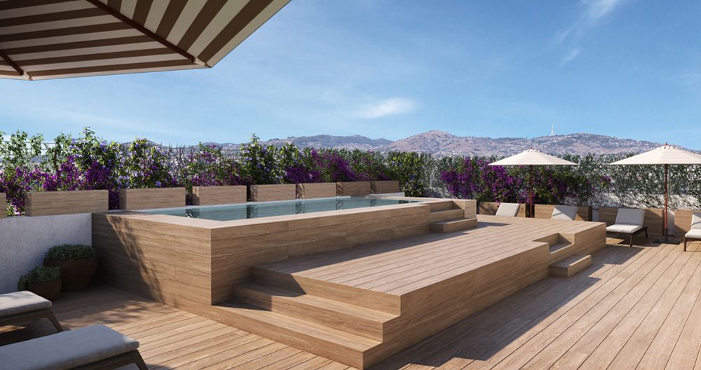 Edifici d’obra nova amb zona comunitària amb piscina